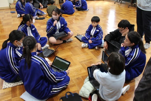 5年生~8年生は、昼休みに多目的室で9送会全体会を行いました。会の冒頭で自治会長から「こんな会にしたい」というコンセプトが発表され、続く係会でそのコンセプトを具現化する方法を検討しました。