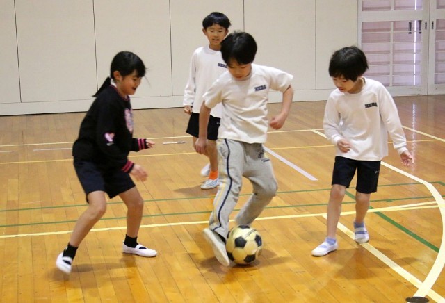 1/29(木)1・2年生 体育 公開日 2026/01/30 更新日 2026/01/30 1・2年生 1・2年生の体育では、なわとびを行った後、「サッカー」を行っています。みんな笑顔でボールを追いかけ、蹴り合っていました。細かいルールは、ゲームを行いながら確認し、学んでいきます。 +7 1・2年生
