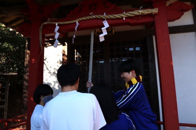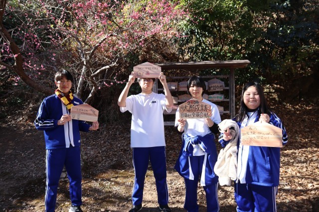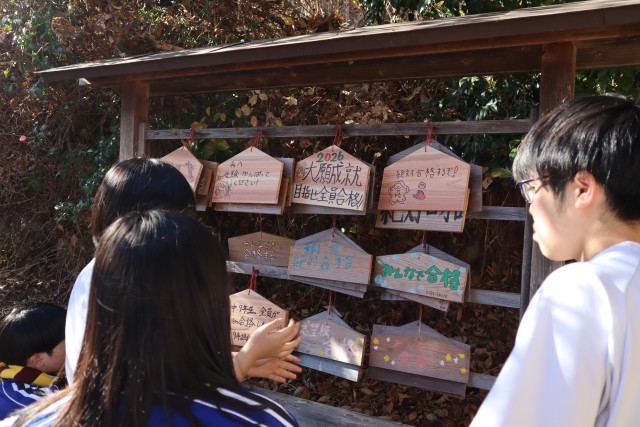 9年生はこれからはじまる私立入試・公立入試に向けて、合格祈願の絵馬を天満宮に奉納しました。絵馬は戸田コミュニティから寄贈されたものです。9年生が受験前に毎年行なっているもので、先輩たちの絵馬の上に自分の書いた絵馬を奉納しました。