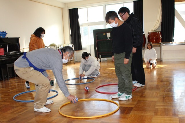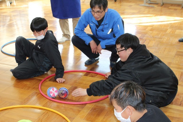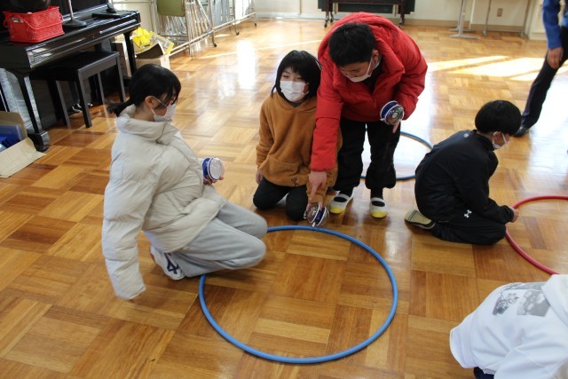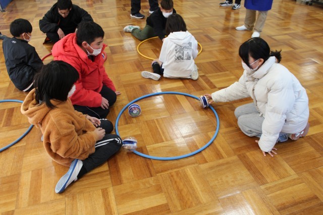 1/30(金)5・6年生 ものづくり教室Ⅱ 公開日 2026/01/30 更新日 2026/01/30 5・6年生 6時間目は、完成したスクローラーを使ってみんなで遊びました。多目的室の中を、完成したスクローラーが動きまわりました。球形のため転がっても自分で起き上がりまた走り出す様子を見て、子どもたちは感動していました。フラフープを土俵にみたててスクローラー同士の相撲をとらせる子や、レールにみたてて電車のようにしている子など色々な遊びをして楽しみました。 +4 5・6年生