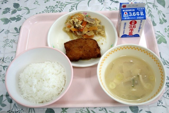 今日の給食は、「カツ丼」「豆腐と大根の味噌汁」「牛乳」です。明日は、9年生が私立高校の受験に挑戦することから、「受験に勝つ!」「自分に勝つ!」ためにメニューはカツ丼です。お肉が軟らかくて美味しかったですね。