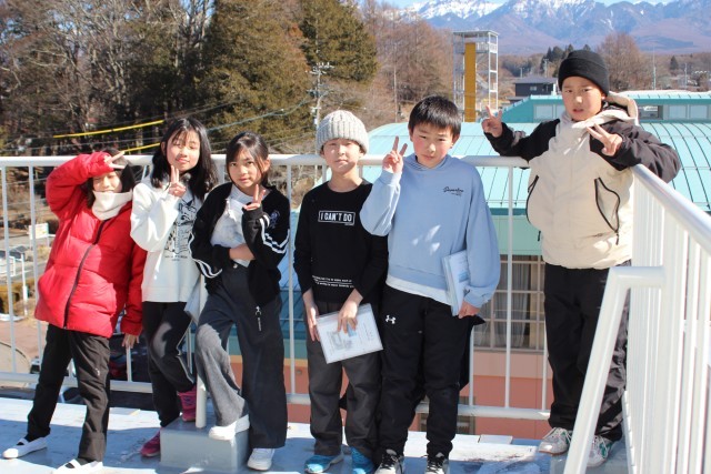 2/4(水)5・6年生 原村冬の旅(交流会) 公開日 2026/02/04 更新日 2026/02/04 5・6年生 原小では、学校の中を案内してもらいました。特に屋上にある展望台は、天気もよく気持ちがよかったです。遠くに八ヶ岳も見えました。一緒に給食も食べることができました。これからスキー場へ向かいます。 +7 5・6年生
