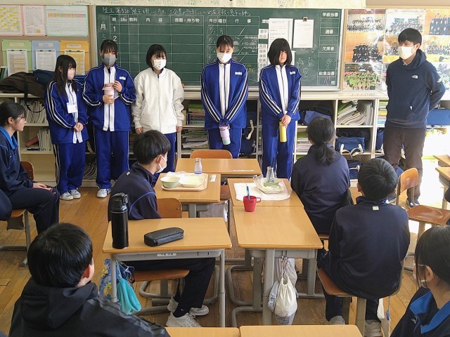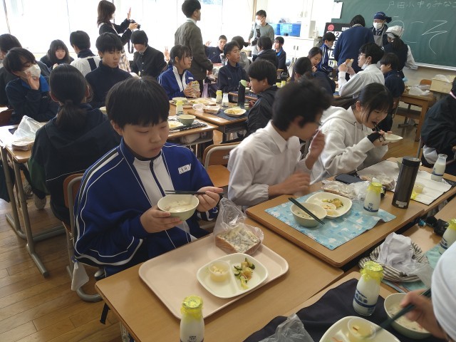 2/4(水)7年生 原村冬の旅(原中との交流)② 公開日 2026/02/04 更新日 2026/02/04 7年生 原中生と一緒に各クラスで給食をいただきました。少し緊張しながらの給食となったようです。中には、お互いに顔を覚えていて、廊下で盛り上がることもあり、大変嬉しいひとときを過ごすことができました。交流の後、少し時間があったので、校庭をお借りして雪遊びをしました。原中学校の皆さま、お忙しい中、ありがとうございました。 +4 7年生