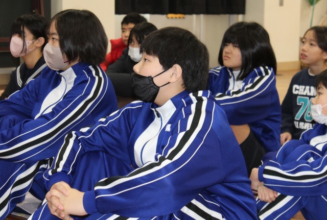 2/6(金)5~7年生 中等部集会 公開日 2026/02/06 更新日 2026/02/06 中等部 5~7年生は多目的室にて中等部集会を開きました。1泊2日の原村での活動を振り返り、ペンションでの過ごし方で良かった点や販売会でがんばっていたことなどについて引率された先生方が語り、温かな評価の一言一言に子どもたちは真っ直ぐな瞳で真剣に耳を傾けていました。 +7 中等部