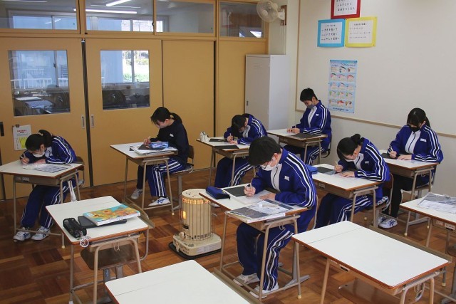 本日は、路面凍結によるチェーン規制の影響で、一部の教職員が登庁できないため、対応できる職員で一部カリキュラムを変更して授業を行っています。8年生は、予定通りに1時間目から美術の授業ができています。内容は、版画のドライポイントを行っています。