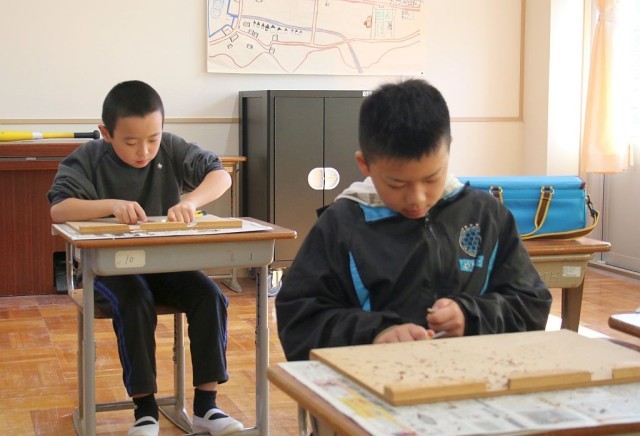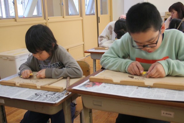 2/13(金)3・4年生 図画工作 公開日 2026/02/13 更新日 2026/02/13 3・4年生 3・4年生の図工では、「自分だけの筆やペンをつくろう」を学習課題として授業が進められています。校庭で探した枝をカッターで削っていきます。児童たちは、カッターを器用に扱いながら、作業に集中して取り組んでいました。 +2 3・4年生