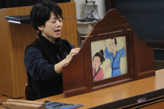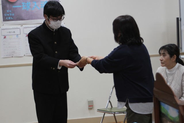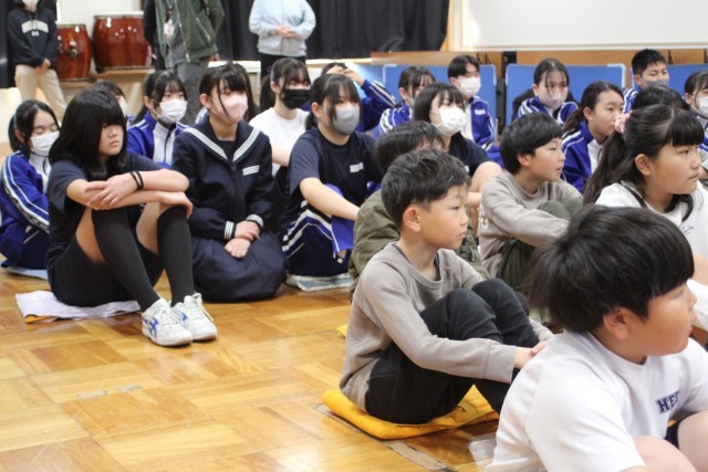 今日は、たちばなの皆さんによる読み聞かせがありました。今年度最後の読み聞かせということで、全校児童生徒に対して手作りの紙芝居を読んでくださいました。戸田に昔から伝わるお話がもとになった紙芝居でした。絵は、なんと戸田小中の卒業生が描いてくれたそうです。会の終わりには、9年生へしおりのプレゼントもありました。たちばなの皆さん、1年間ありがとうございました。令和8年度もよろしくお願いします。