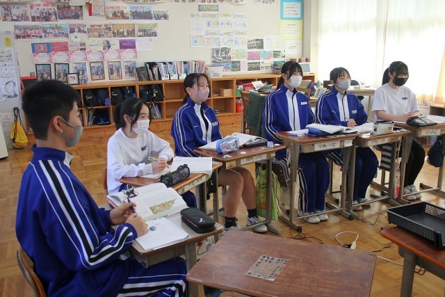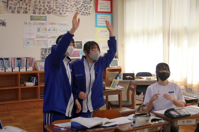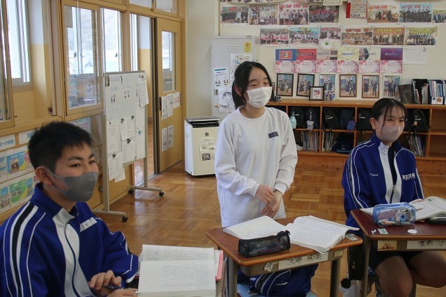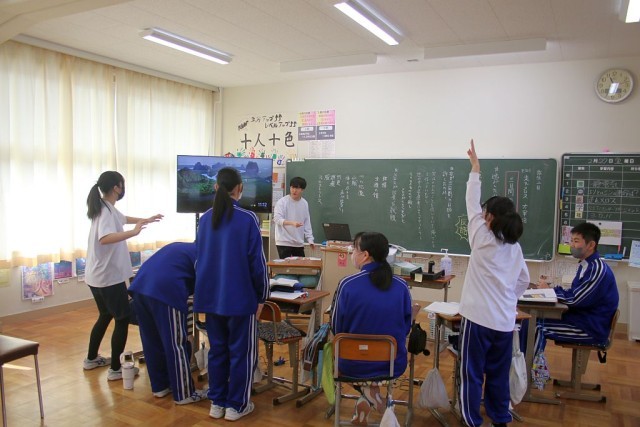 8年生の国語では、題材「走れメロス」について、「三日間の日限」を学習問題として授業が進められています。先生の発問に対して、全身を使って挙手をし、自分の考えをしっかり答えていました。8年生元気いっぱいです!