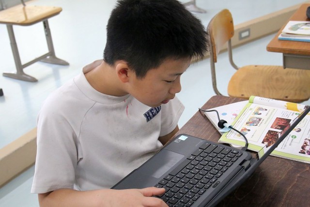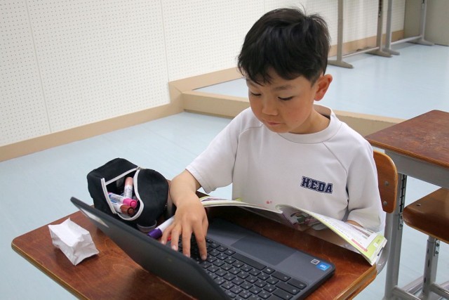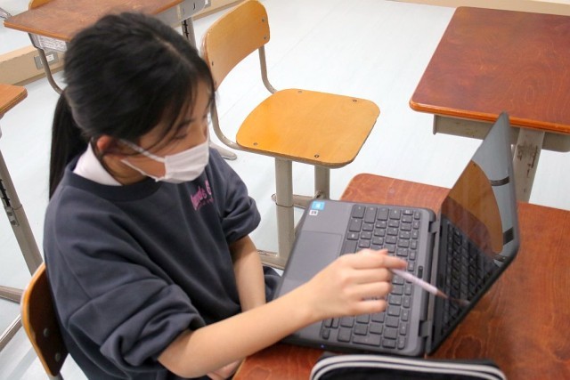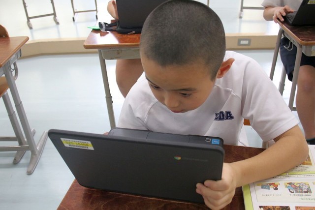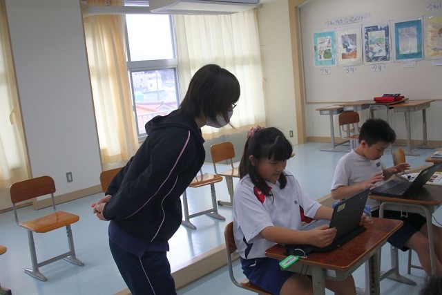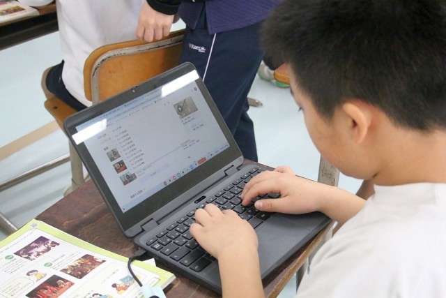 3・4年生の音楽では、「ちゃっきり節」について授業が進められています。Chromebookを駆使して、個々で調べ学習を行っています。調べた内容は、きれいに整理されながらロイロノートにまとめられていました。