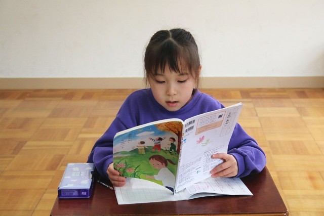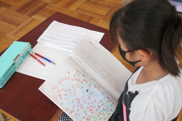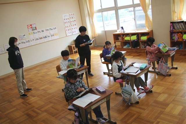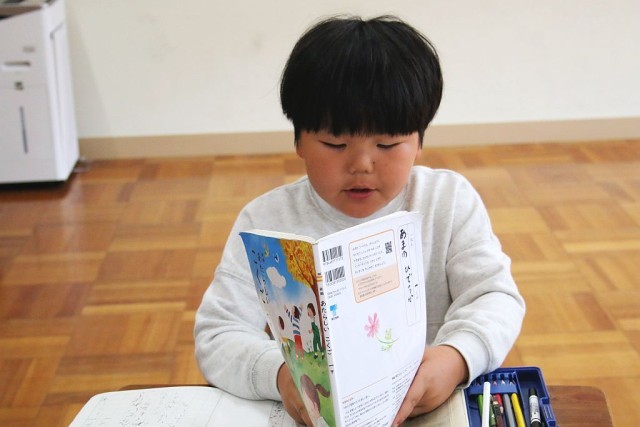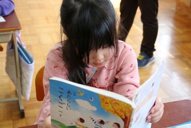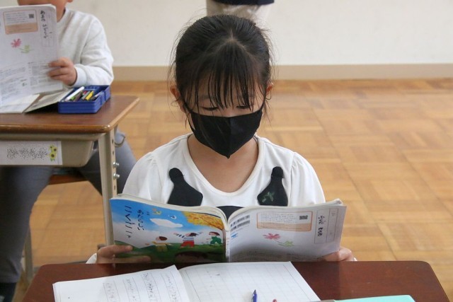 1年生の国語では、「スイミー」を題材として授業が進められています。音読は、理解力や記憶力、脳の活性化に効果がある学習法です。声を元気いっぱいに出した音読ができていました。
