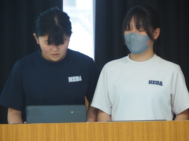 中等部では、原村販売会の引き継ぎ式がありました。7年生が5・6年生へ販売会のアドバイスをしてくれました。商品はどんなものを持って行き、どんな説明をするのか。いくつ売り、どれくらいの売り上げになるのか。チラシやポップは、どんな風に作るのかなど具体的な話でした。また「お客さんに接するときは笑顔が大切」「質問には正確にハキハキ答えること」など心構えも教えてもらいました。来年の原村交流に生かしていきましょう。