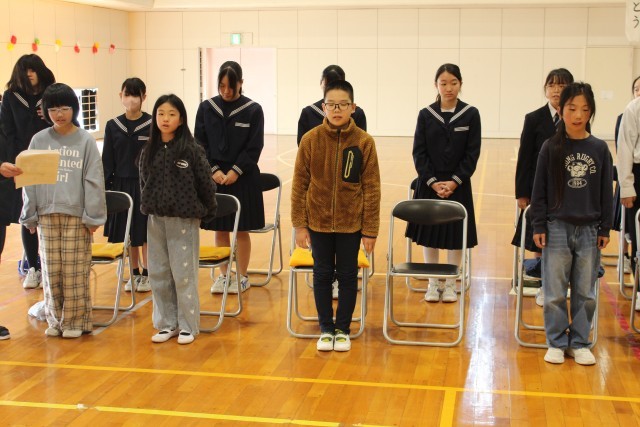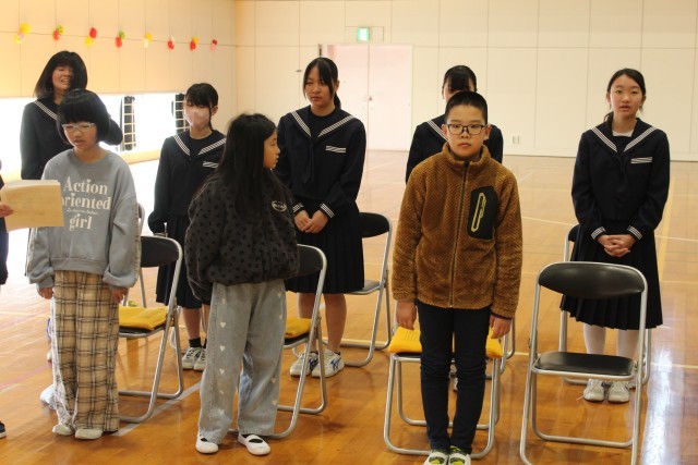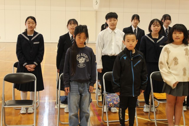 3/16(月)1~8年生 送辞の練習 公開日 2026/03/16 更新日 2026/03/16 学校行事 1時間目の卒業式総練習に引き続き、2時間目は在校生の送辞練習がありました。卒業する9年生に向けて感謝のコメントを各学年で考えました。当日も、今日の練習の時と同じように心のこもった送辞ができるとよいですね。 +7 学校行事