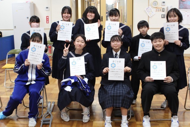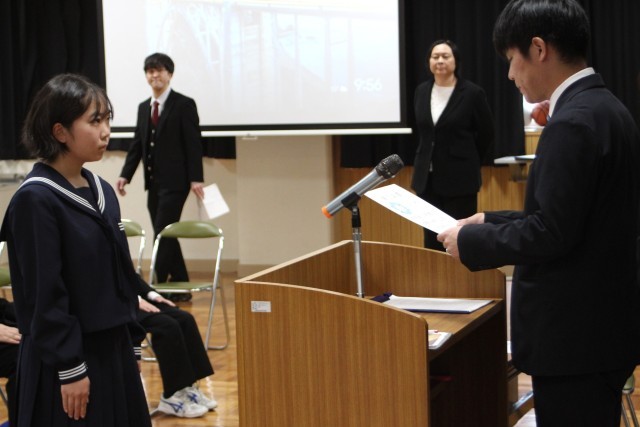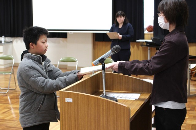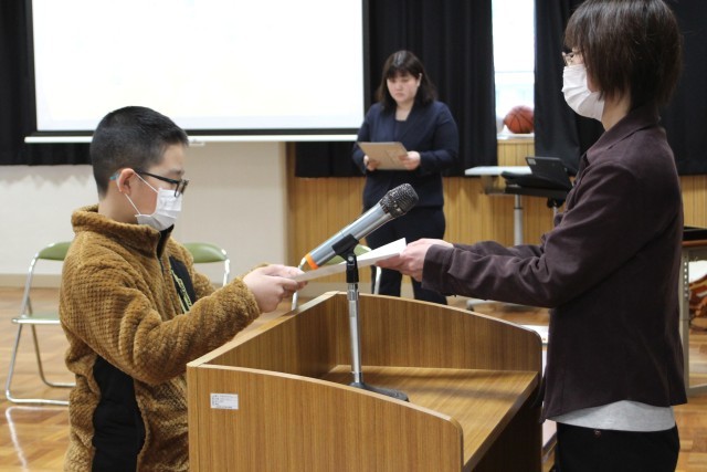 今日は初等部と中等部で卒部式が行われました。4年生は初等部を卒部し、4月からは中等部に上がります。代表児童からは「委員会をがんばりたい。」という言葉がありました。7年生は、いよいよ高等部になります。9年生を支え、学校の柱となって活躍することを期待しています。