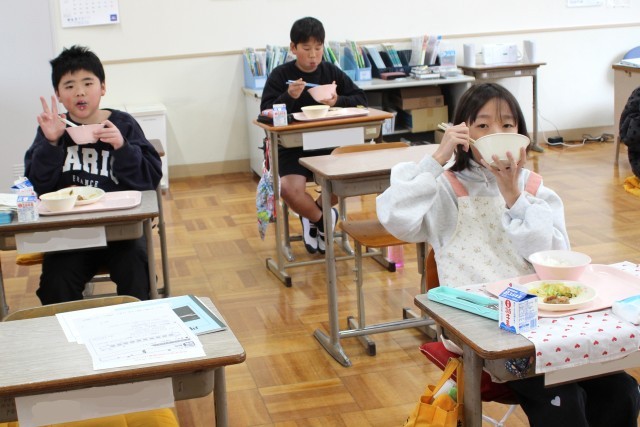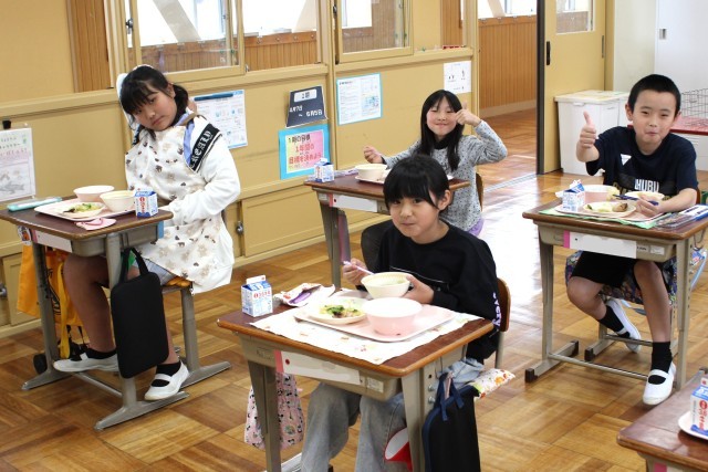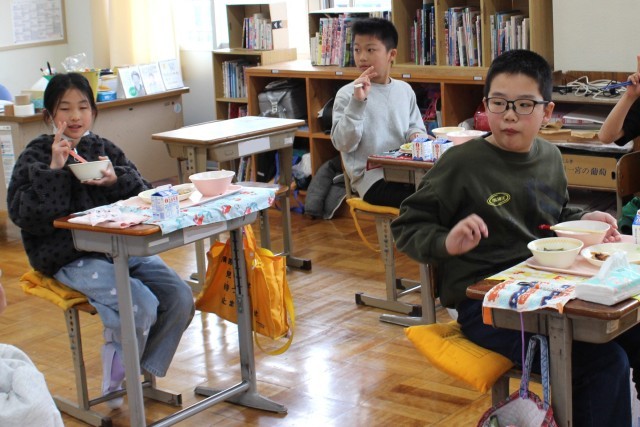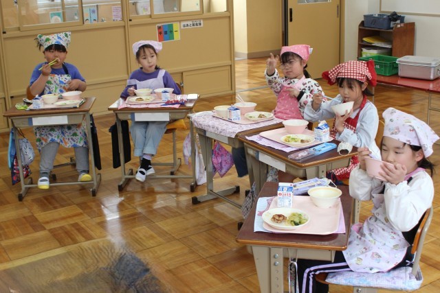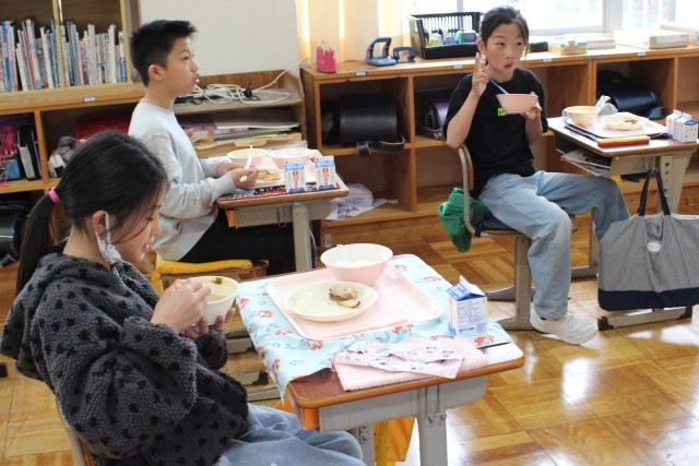 今日から令和8年度の給食が始まりました。待ちに待った給食ですね。もりもり食べて、午後の授業も頑張りましょう。1年生の給食は、14日(火)から始まります。