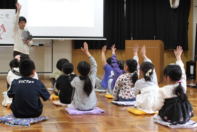 今日は、2~4年生で初等部集会を行いました。学校生活で、令和8年度から変わったことの確認をしたり、簡単なゲームを行ったりしました。ゲームでは「もうじゅう狩りに行こうよ」「じゃんけん列車」をしました。「勝っても負けても笑顔」の合い言葉のもと、みんなで楽しむことができました。