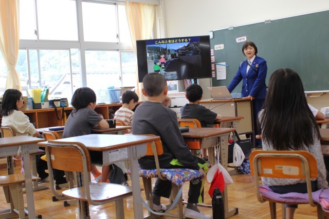 3・4年生は、自転車教室で自転車の点検の仕方や、ブレーキのかけ方などを確認しました。交差点では、停止線で止まった後、周りを確認することの大切さも教わりました。自転車に乗るときは、十分に注意して事故に遭わないようにしましょう。