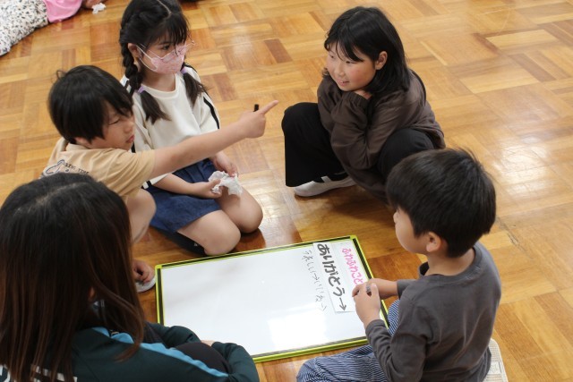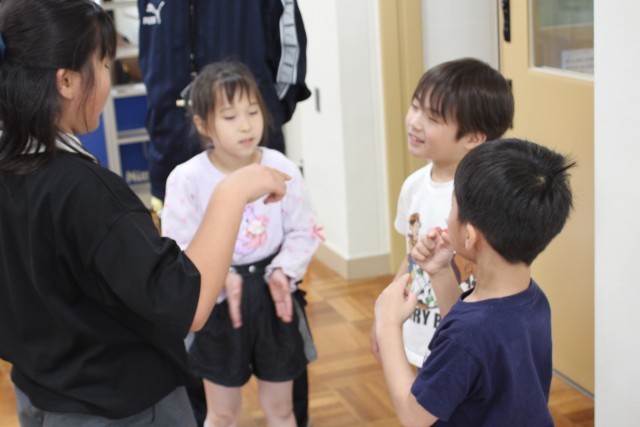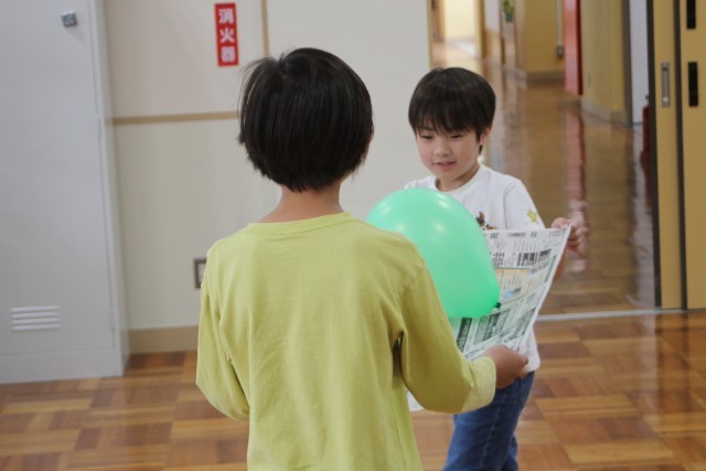 今日は、初等部の第1回目の「はあとタイム」がありました。最初はアイスブレイクとして、手拍子に合わせて名前を呼び合いました。次に、チクチク言葉・ふわふわ言葉の確認をしました。ペアでの風船運びゲームでは、最後に全員で拍手をして、和やかな雰囲気の中終わりました。