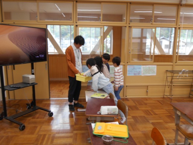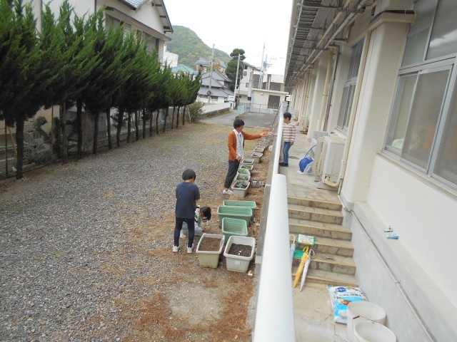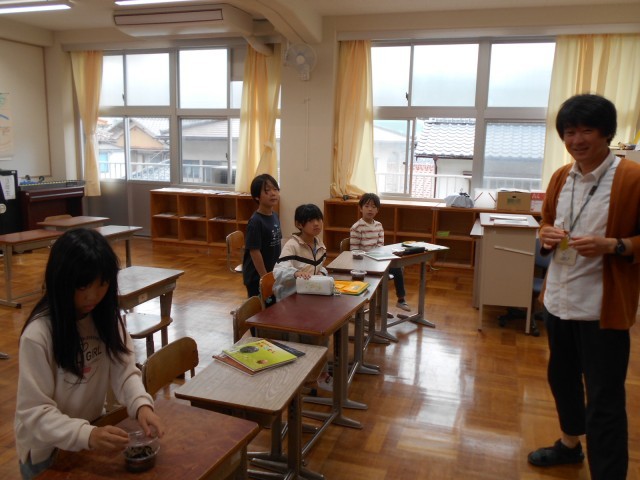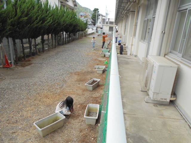 3年生は、理科の時間に「春の生き物」について学んでいました。教室内でダンゴムシの様子を観察してから外に出て、新しいダンゴムシを見つけたり、容器の中の葉を入れ替えたりしていました。