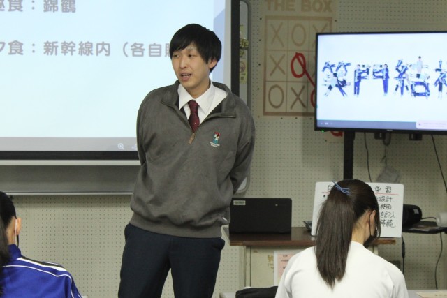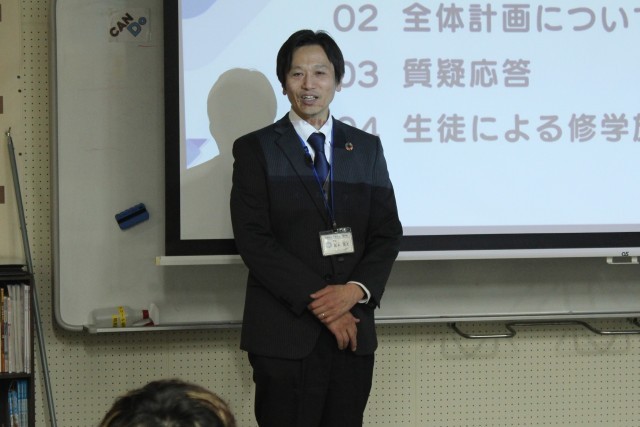 4/23(木) 9年生 修学旅行説明会 公開日 2026/04/23 更新日 2026/04/23 9年生 9年生は5時間目に修学旅行説明会を行いました。会に先立ち、今取り組んでいる探究学習の中間報告を行いました。自分で探求テーマを決め、仮説をたて、実証する方法についてスライドを使って説明しました。また、修学旅行説明会後には、今年度育休から復帰した教員へのサプライズがありました。 +5 9年生