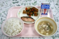 今日の給食は、「五目炊き込みご飯」「いわしのカリカリフライ」「のっぺい汁」「牛乳」です。いわしのカリカリフライは、名前の通りカリカリで、身もしっかり味がついていました。のっぺい汁は新潟県の郷土料理として知られていますが、実は新潟県だけでなく、奈良県、島根県、熊本県などでも作られて、「のっぺい」、「のっぺい汁」、「のっぺい鍋」、「のっぺい煮」、「のっぺ」、「のっぺ汁」など各地で様々な呼び方をしているそうです。