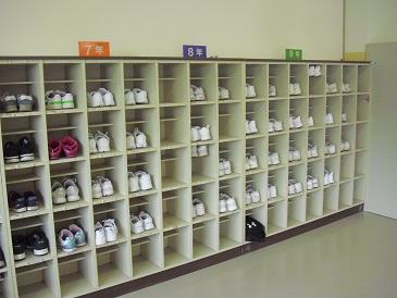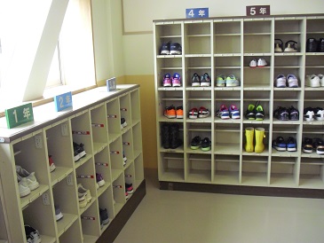 靴箱の様子です。きれいに揃っており、子どもたちの「美しい心」が表れています。