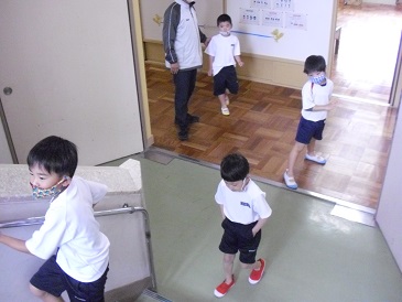 1年生は身体測定の時間でした。1年生はちょうど身体測定を終えたところで、保健室から教室に戻りました。