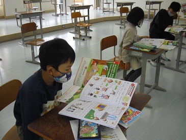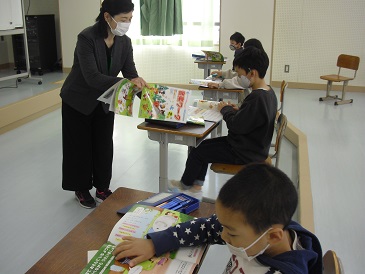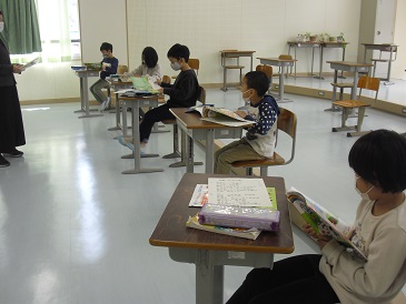2年生は音楽の時間でした。校歌を歌った後、音楽ワークを行いました。