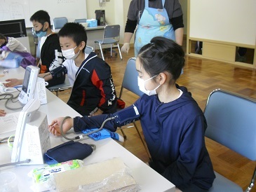 血圧測定の後、採血をしました。みんな落ち着いて検診を受けることができました。