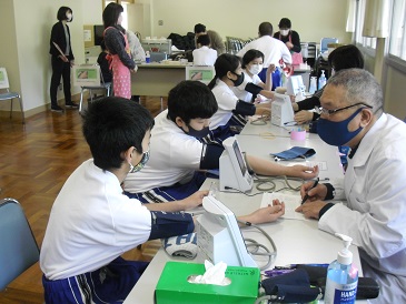 7年生は、生活習慣病予防検診を行いました。血圧測定から採決までスムーズに実施することができました。