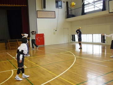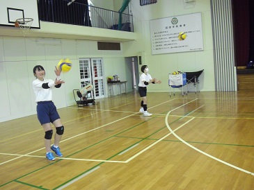 女子バレーボール部の様子です。上級生が7年生に基本のプレイを教えていました。