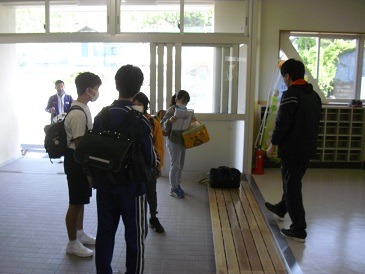 登校の様子です。子供たちが元気に登校してきました。今週も元気にスタートできました。