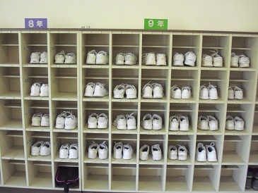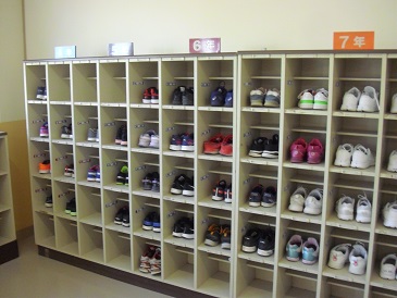 靴箱の様子です。きれいに揃っており、子どもたちの「美しい心」が表れています。