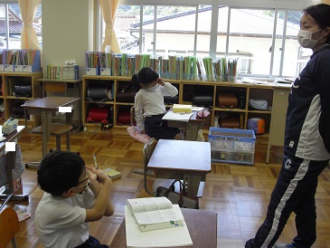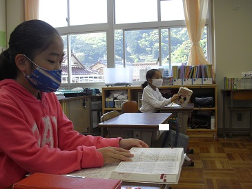 3年生は国語の時間でした。「つり橋わたれ」という教材を学習していますが、今日はわからない言葉の意味を国語辞典で調べていました。