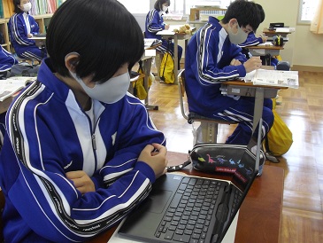 9年生は社会の時間でした。「明治新政府の外交政策」について、教科書や資料集、Chromebook(クロームブック)を使って調べていました。