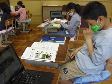 3年生は社会の時間でした。「学校のまわり」という教材を学習していました。学校のまわりにはどんなものがあるかを確認をしていました。