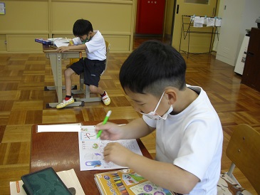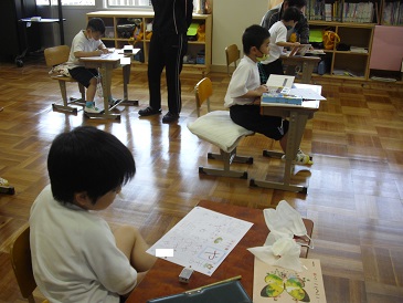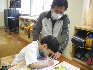 1年生は国語の時間でした。今日は「や」の字について学習しました。