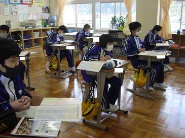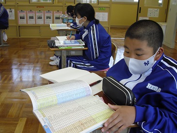 7年生は社会の時間でした。「地図帳を使いこなそう」というテーマで、学習を進めていました。地図帳を開き、人口や面積などを確認しました。