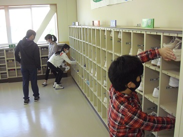 今朝、環境委員会の児童生徒による朝の清掃活動が行われました。靴箱や玄関廊下をきれいにしていました。ありがとうございました。