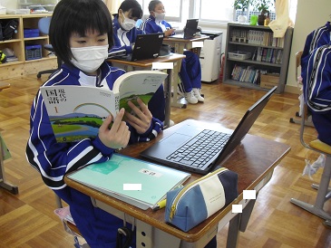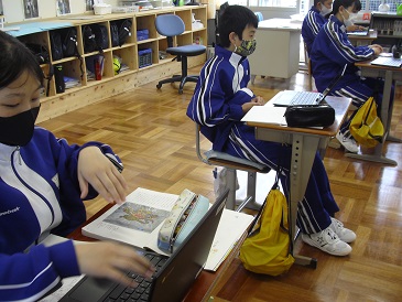 7年生は国語の時間でした。今江祥智著「竜」という物語文を学習しています。それぞれの個人感想をChromebook(クロームブック)でまとめた後、学習課題を考えました。