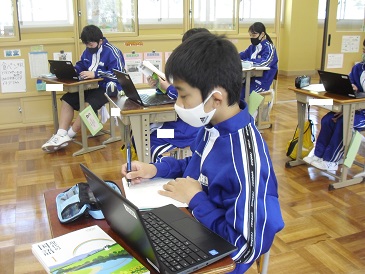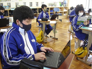 7年生は国語の時間でした。今江祥智著「竜」という物語文を学習しています。それぞれの個人感想をChromebook(クロームブック)でまとめた後、学習課題を考えました。