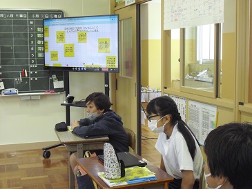 6年生は社会の時間でした。「人権」をテーマに考えたことをみんなで共有しました。