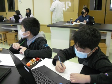 5年生は理科の時間でした。「雲と天気の関係」についてChromebook(クロームブック)を使って調べ学習を進めていました。
