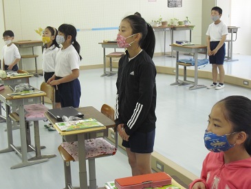 3・4年生は音楽の時間でした。校歌「戸田の風」をきれいな声で歌っていました。