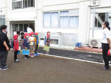 3年生が社会科見学に出かけます。沼津駅やびゅうおなど、沼津市内数か所を回ります。換気や消毒など、コロナ対応をしながら学習してきます。2年生も見送ってくれました。
