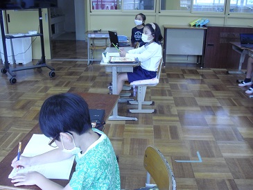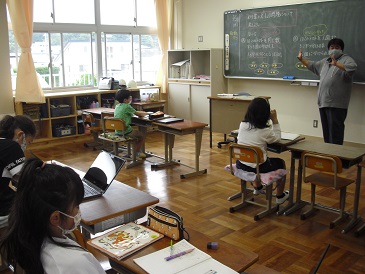 3年生は算数の時間でした。割り算の文章題を学習しています。