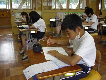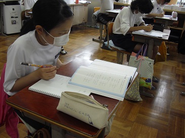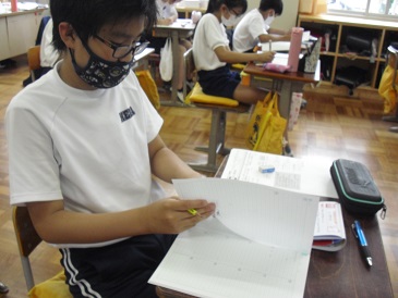 6年生は算数の時間でした。「文字と式」について学習しました。計算ドリルをしながら確認をしていました。