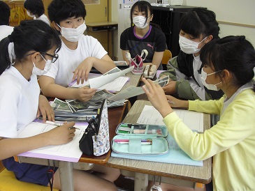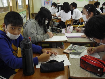 6年生は総合的な学習の時間でした。「交通安全リーダーと語る会」に向けて、発表の仕方をグループで考えました。