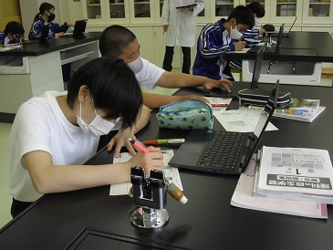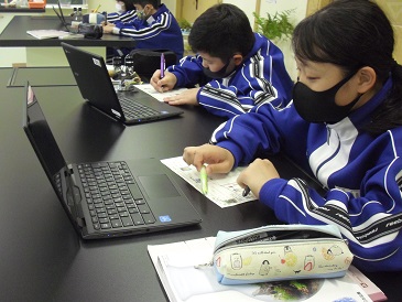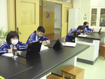 7年生は理科の時間でした。マツの雄花と雌花を観察の仕方についてChromebook(クロームブック)で確認しました。