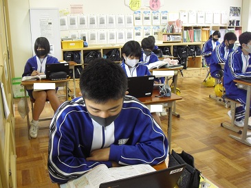9年生は社会の時間でした。9年生は社会で「大正時代」について学習しています。大正時代について、教科書や資料集などから読み取っています。