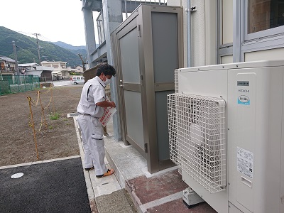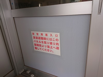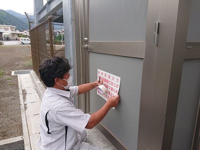 用務員さんが、非常用進入口表示プレートを掲示しました。
